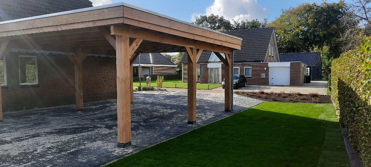 U wilt bijvoorbeeld een robuuste carport van douglas hout. Dan is het wel zo fijn dat uw hovenier het straatwerk eronder ook kan verzorgen. En wilt u ook gelijk uw gazon vernieuwen? Alles is mogelijk!