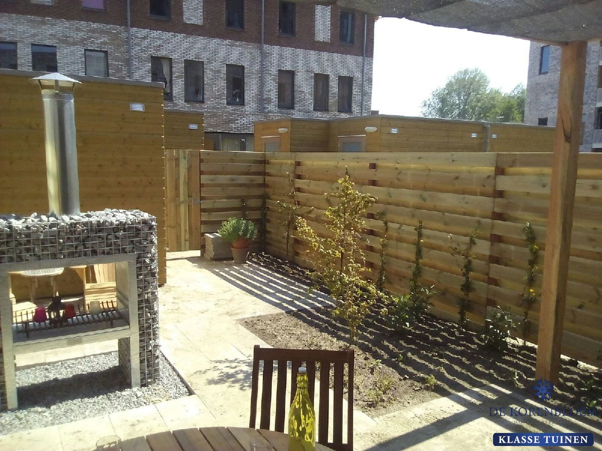 Deze constructie is gemaakt van larikshouten balken wat helemaal past in het huidige tuinplaatje. Het schaduwdoek is regenafstotend, maar laat nog wel regen door. U blijft eronder dus niet droog, maar tijdens een zonnige dag is het er wel heerlijk koel. En natuurlijk is het ook mogelijk om het doek op te klappen, zodat er een open ruimte ontstaat.
